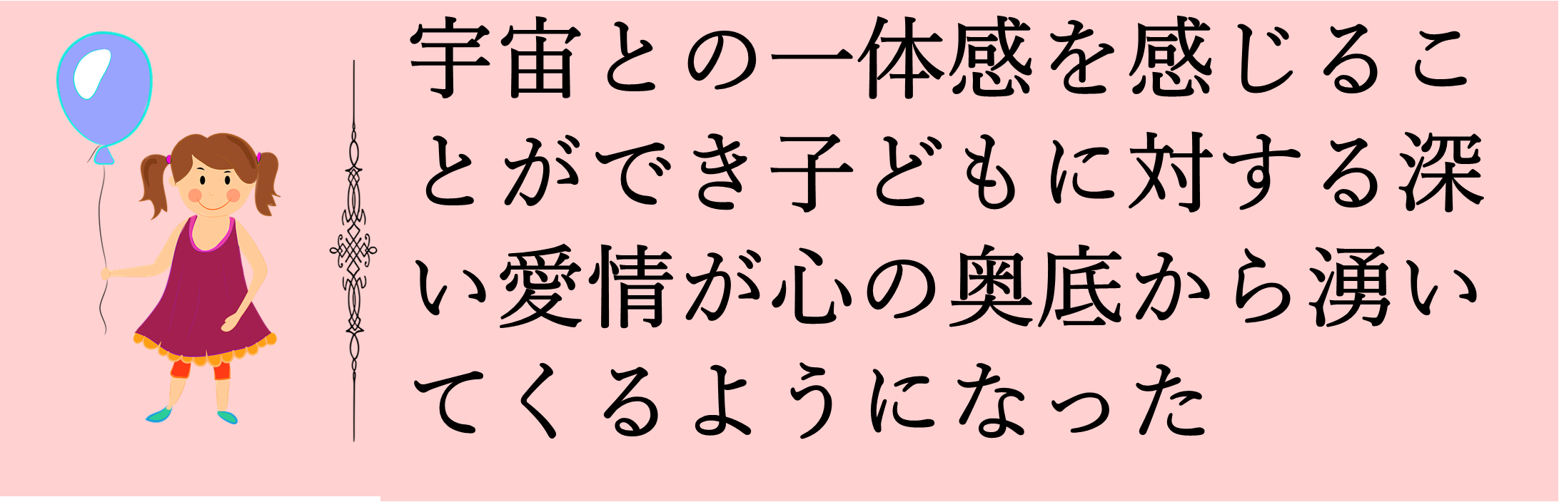 セッションの中で大きな愛という気づきがあり、生きとし生けるものすべてがいとおしい気持ちが湧いてきて、人間の本来あるべき姿、全人類が気づくべきことが分かったような気がしました。今は、子どもにイラッとしても深い愛情が心の奥底から湧いてくるような感覚があり、穏やかな気持ちで過ごせています。