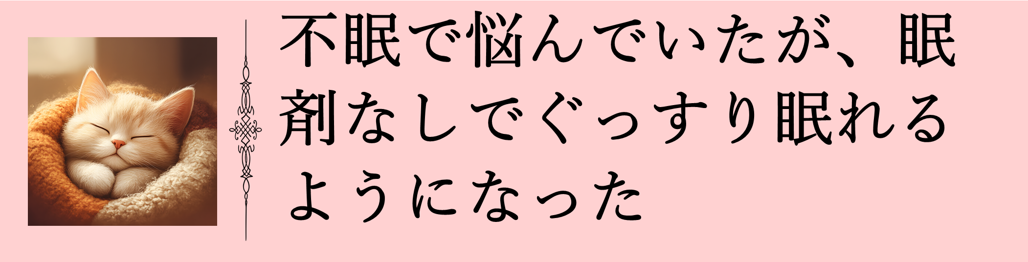 自分を煩わせていた不安や悩みのモヤモヤも無くなり、心が楽になりました。ヒーリングを受けている間は、起きているんだけど眠っているような、とても心地よい感覚でした。終わった後、心も身体も、柔らかくなったのを感じました。
